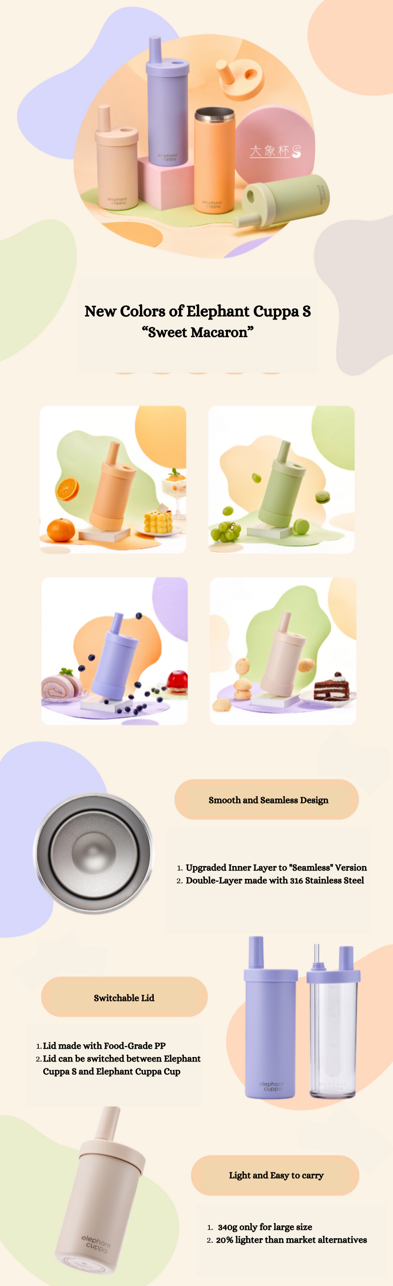 Brand new Sweet Macaron Series Elephant Cuppa S are coming to town 🙌 Elephant Cuppa- Bubble Tea Tumbler is easy to take anywhere. For the sake of our health and the environment, we all practice plastic-reducing life together.