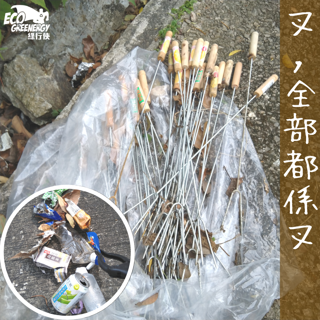 行山徑旁的燒烤場範圍,是垃圾重災區。🙈短短1個小時,我們在紅梅谷燒烤場正旁邊的斜坡,拾到6️⃣0️⃣枝燒烤叉及大量燒烤用品垃圾🤬,離開時還有目測起碼超過1️⃣0️⃣0️⃣枝叉分別因在斜坡較高位置、卡在渠口、卡在植物而未能清理。