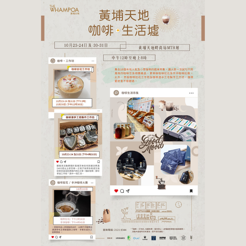 首個HomeSquare市集系列《咖啡 ‧ 家 ‧ 市集》一連四星期將會邀請二十個本地設計及手作品牌,將咖啡與設計生活融合,重新演繹咖啡產物,帶給大家味蕾刺激外的新體驗,將藝術設計帶進生活中。